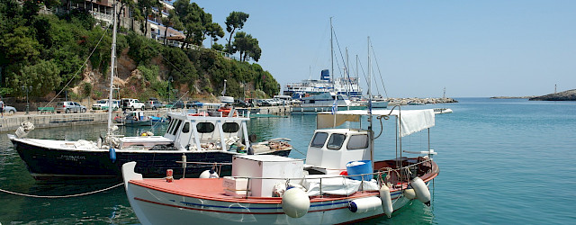 Tijdens een van de volgende dagen eten we in restaurant Akrogiali aan de haven in Patitiri. Ioanna heeft de tafel voor ons gereserveerd, zodat we ‘first class’ zitten. Na wat overheerlijke tonijn vooraf eten we de specialiteit van het huis: linguine met garnalen. Gevolgd door een krokant gegrilde red snapper. Wie zegt er nog dat Grieken alleen maar grote hoeveelheden vlees eten?