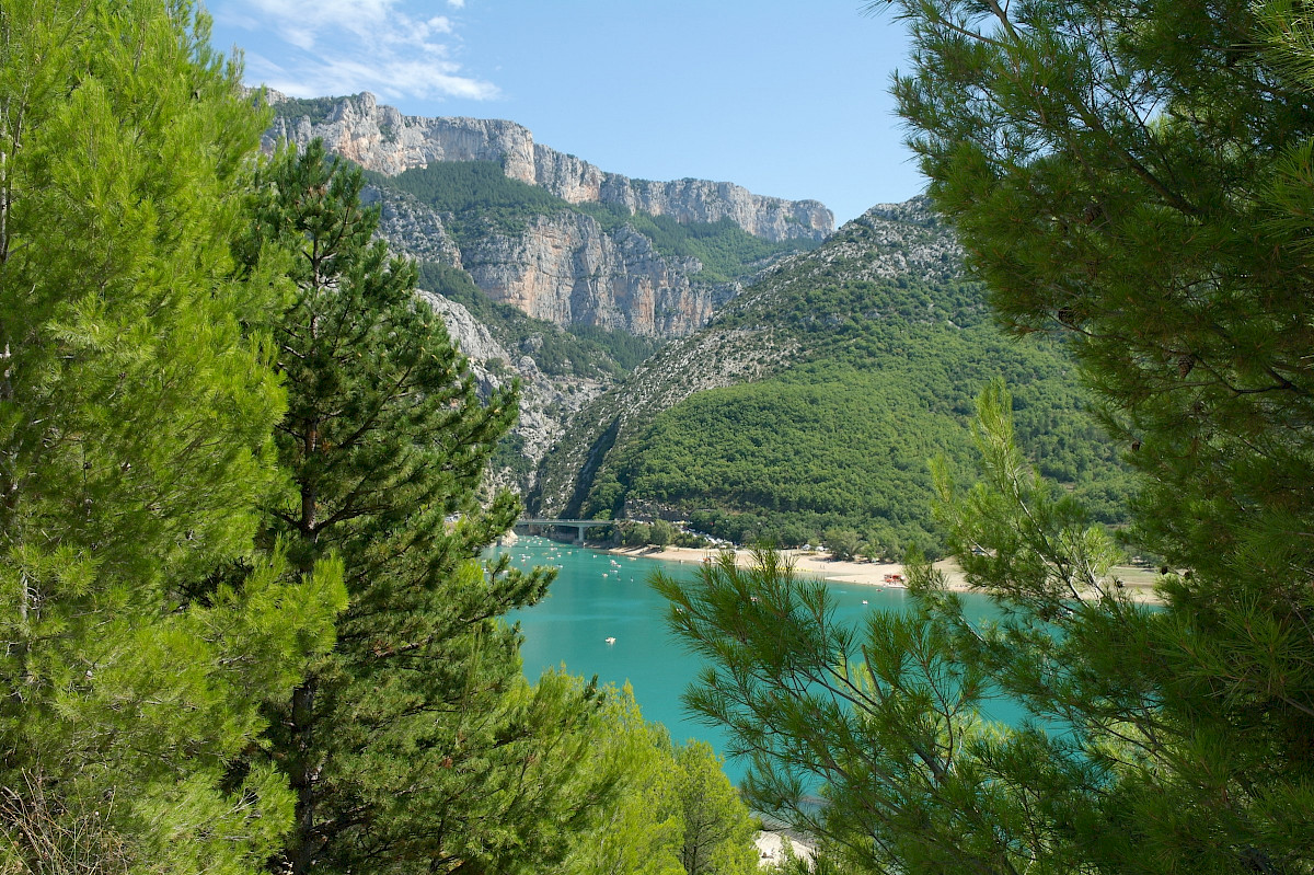 De route van de volgende dag, van Forcalquier naar het nabij het stuwmeer van Saint Croix gelegen fraaie dorpje Aiguines, is wat korter en vormt de opmaat naar het pièce de résistance van onze fietstocht, te weten de fameuze Gorges du Verdon, ook wel de Grand Canyon du Verdon genoemd. Deze met afstand grootste rotskloof van Europa is over een afstand van meer dan 25 kilometer op spectaculaire wijze uitgeslepen door de rivier de Verdon, en komt uit in het meer met zijn opvallende kleur groenblauw water. Op bepaalde stukken bereikt de weg door de kloof hier een hoogte van maar liefst 1200 meter, en als je dan vanaf je fiets over het muurtje de duizelingwekkende diepte in kijkt, voel je je heel nietig en tegelijk één met de natuur. Een magistrale ervaring! Na een paar dagen wordt het grote voordeel van een meerdaagse fietsvakantie steeds duidelijker. Je ziet niet alleen veel meer van de omgeving, je geniet ook veel meer van alle geuren en geluiden en komt daardoor ondanks de lichamelijke inspanning steeds meer tot rust. En als je even wil stoppen voor koffie met zo’n heerlijke Franse roombotercroissant hoef je niet eerst een parkeerplek te zoeken maar zet je je fiets gewoon naast je terrastafeltje! In het hoog op een bergtop gelegen dorp Fayence is het marktdag als we arriveren. Zo’n drukbezochte gezellige markt, waar de geuren van lavendelzeep, gegrilde kippetjes en vers fruit om voorrang van je zintuigen vechten met de felle kleuren van Provençaalse tafellakens en andere bonte stoffen.