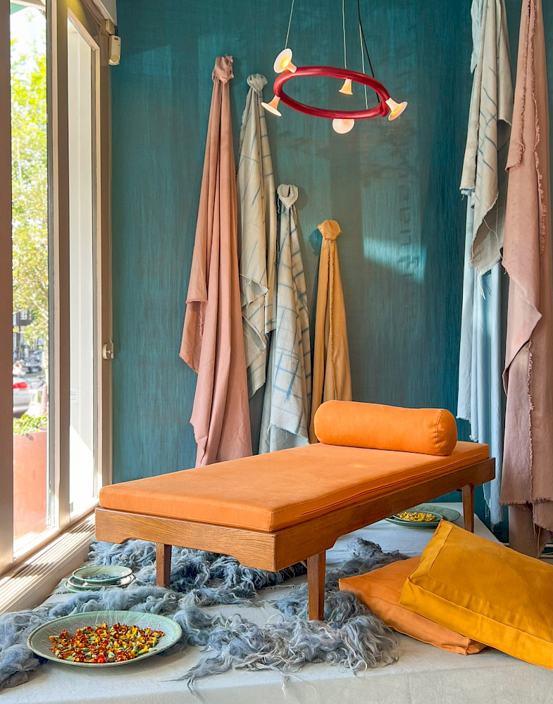 Dertig jaar werken met textiel, wol en natuurlijke kleurstoffen. Voor kunstenares Claudy Jongstra (62) geen reden om uitgebreid achterom te kijken, maar wél om haar werk eens naast elkaar te leggen. Te zien wat blijft. Wat verandert. En wat nog steeds in beweging is. Dat doet ze met Presence in Process, een tentoonstelling in het Cuypershuis in Roermond, haar geboortestad. Verwacht geen klassiek overzicht met jaartallen en hoogtepunten. Presence in Process voelt meer als een open atelier. Vroege experimenten staan naast recent werk. Kleurstudies, materiaalproeven en archiefstukken liggen tussen grote textielwerken. Sommige zijn hier voor het eerst te zien. Samen laten ze zien hoe Jongstra’s praktijk zich in dertig jaar heeft ontwikkeld: al doende, onderzoekend maar altijd met aandacht voor materiaal, ambacht en proces.
