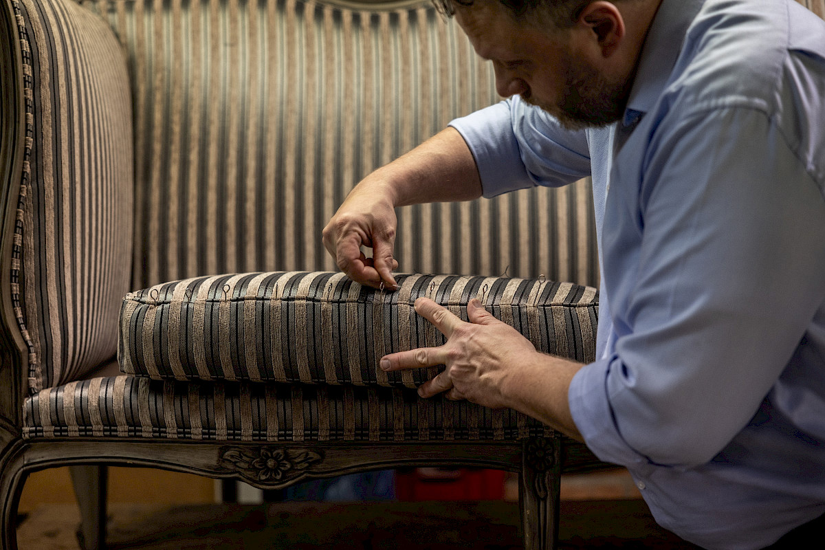 Net zoals je bijvoorbeeld bij wijn en ook kaas ziet dat leeftijd een rol speelt, is dat ook het geval bij klanten zelf. ‘’Jazeker, je ziet vaak dat de klant een emotionele binding heeft met dat bepaalde oude stoeltje dat van oma is geweest. Ik heb wel eens meegemaakt dat een meubel al zes generaties in een familie was, en dan wil de zevende generatie de uitstraling daarvan bij een renovatie ook vasthouden. Die emotie zul je minder snel zien bij een nieuw gekocht designmeubel, hoe mooi dat ook kan zijn. Overigens zie ik steeds meer dat ook jonge mensen hun moderne kwaliteitsmeubels willen laten herbekleden, vaak uit duurzaamheidsoverwegingen.’’