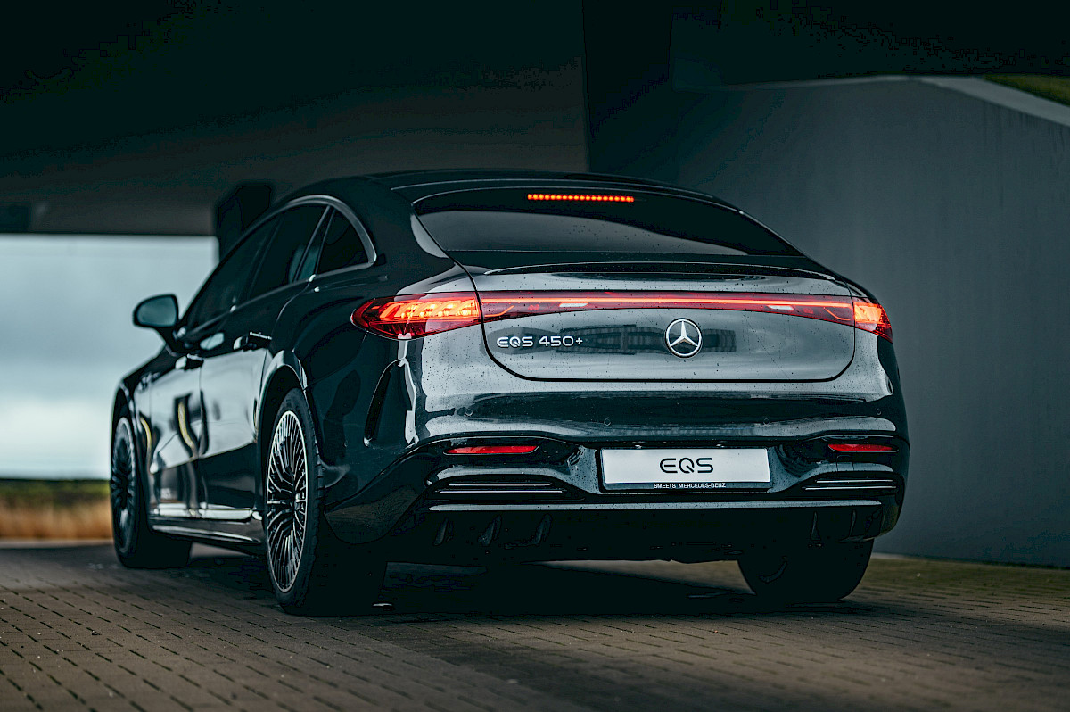 Op het eerste gezicht lijkt de EV niet op een Mercedes zoals we die gewend zijn. Volgens Mercedes-Benz adviseur Tommy Kok is hij het beste te vergelijken met een S-Klasse. Maar waar de raamstijlen van de S-Klasse agressiever naar beneden gaan, lopen die van de EQS schuiner naar de – misschien niet het beste woord bij een elektrische wagen - motorkap toe. De neus lijkt spitser en lager – die van de S-Klasse is hoekiger en stopt abrupter. De minder agressieve look is echter met een reden zo ontworpen en is dus niet een puur esthetische keuze.