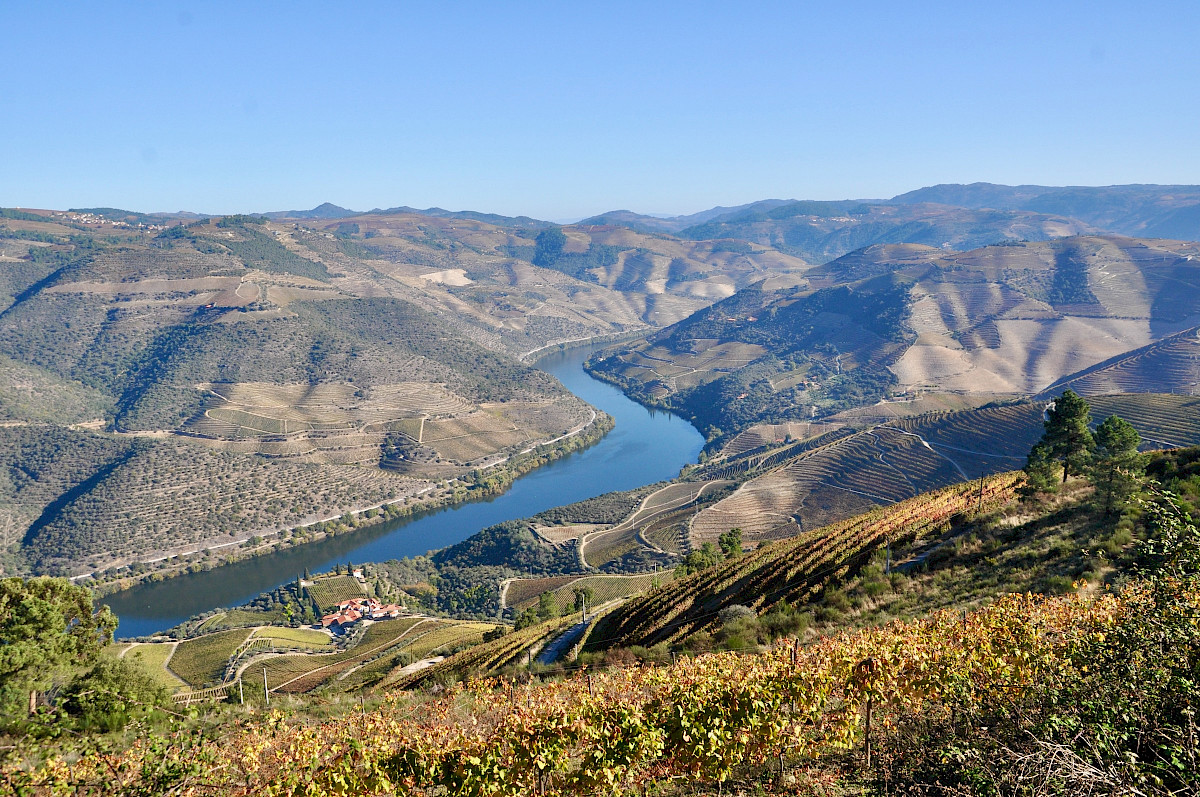 Wie van sportief autorijden houdt, geniet van kronkelige, goed onderhouden bergwegen. Douro is een van de weinige wijnregio’s waar je welkom bent tijdens de oogst in september. Het is dan overdag gemiddeld een aangename 22 ºC. Na een uur rijden door de Minho-regio begint de omgeving te veranderen in een glooiend berglandschap, met druivenstokken, waar je ook kijkt. Het eerste deel, rond de stad Regua, heet Baixos Corgo. Daar worden vooral de eenvoudige portwijnen gemaakt.