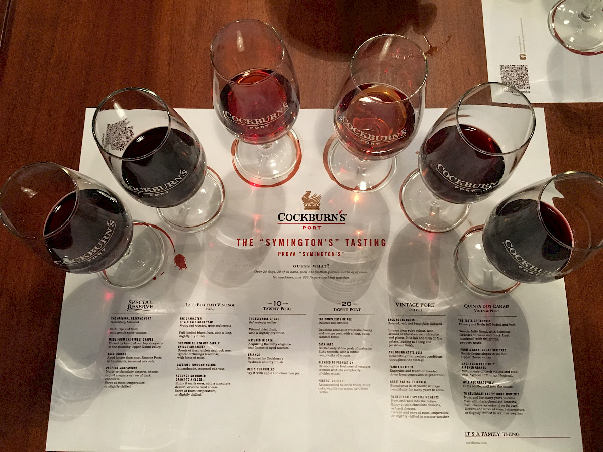 Port: fluweelzacht, krachtig en complex. Porto is gebouwd op de noordhelling van de rivier. Aan de zuidzijde ligt het dorp Villa Nova de Gaia. Hier hebben de wijnhandelaren hun warehouses gebouwd; klassieke grote pakhuizen waar de portwijnen tot ze verkocht worden liggen te rijpen in pipes, zeer oude houten vaten van 550 liter. Handelaren worden shippers genoemd omdat vroeger de wijnen in vaatjes vanuit het binnenland per boot over de woest-onstuimige en gevaarlijke rivier hier naartoe gebracht werden. Je kunt overal in Gaia port proeven. En als je wat meer betaalt, krijg je een fantastische tasting.