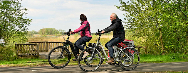 Het verderop gelegen Straelensbroek [tussen knooppunt 45-46] is zeker een rondwandeling waard. De uitgestrekte waterpartijen en rietkragen zijn voor water- en rietvogels als blauwborst de plek om aan het nageslacht te werken. Elk vogeltje zingt zoals het gebekt is en in die kakofonie aan vogelzang claimt iedereen zijn eigen territorium. We fietsen er langsheen en doen het met het fraaie panorama-uitzicht vanaf de uitkijktoren; eerlijk gezegd ziet het er vanuit de lucht nog veel indrukwekkender uit. U kunt via punt 47 aansluiting vinden naar het Duitse fietsknooppuntnetwerk