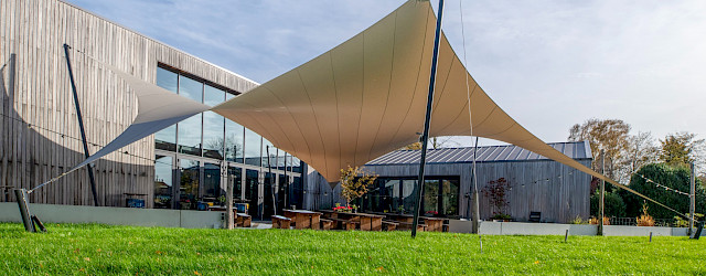 Manta Roofs heeft de terrasoverkappingen bij onder andere de Alfa Bierbrouwerij verzorgd: u zit hier nu heerlijk koel in de schaduw, beschut tegen de regen en de wind maar het voelt toch ruimtelijk zonder vermindering van uitzicht. Door de unieke vorm en plaatsing blijft ook het logo van de brouwerij tegenover het terras volledig in zicht. Het team van Mulders – en zijn compagnon Bart Weesing – maakt onder andere gebruik van 3D-lasertechniek. Deze techniek zorgt ervoor dat de constructie op precies de juiste plaats komt en op de juiste punten bevestigd wordt. Dit wordt tot op de millimeter nauwkeurig bepaald.