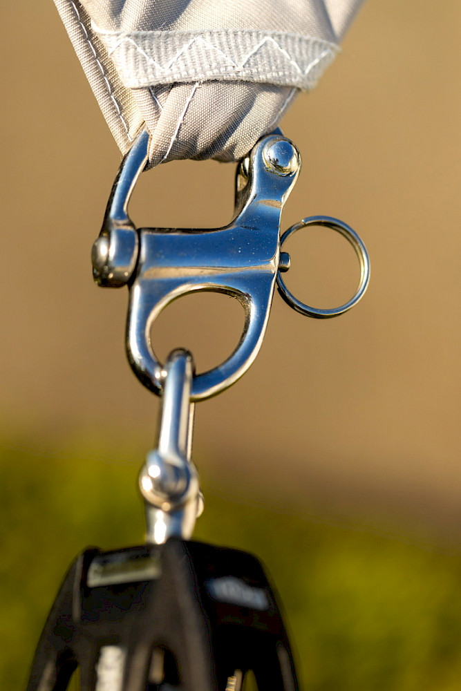 Door handig gebruik te maken van de wijze waarop het materiaal is opgebouwd, ontwerpen we het doek zo dat het altijd strak in de gewenste vorm blijft en niet uit haar verband wordt getrokken. Het membraan gaat hierdoor niet doorhangen of klapperen in de wind en heeft een veel langere levensduur. Wanneer het snijplan klaar is, worden de panelen gesneden en gecontroleerd op weeffouten en tenslotte handmatig gestikt met teflongaren in onze eigen zeilmakerij. Met aluminium masten en waar nodig RVS-muurplaten of zelfs boompunten worden de doeken gehesen met katrollen die ook in de jachtbouw gebruikt worden.