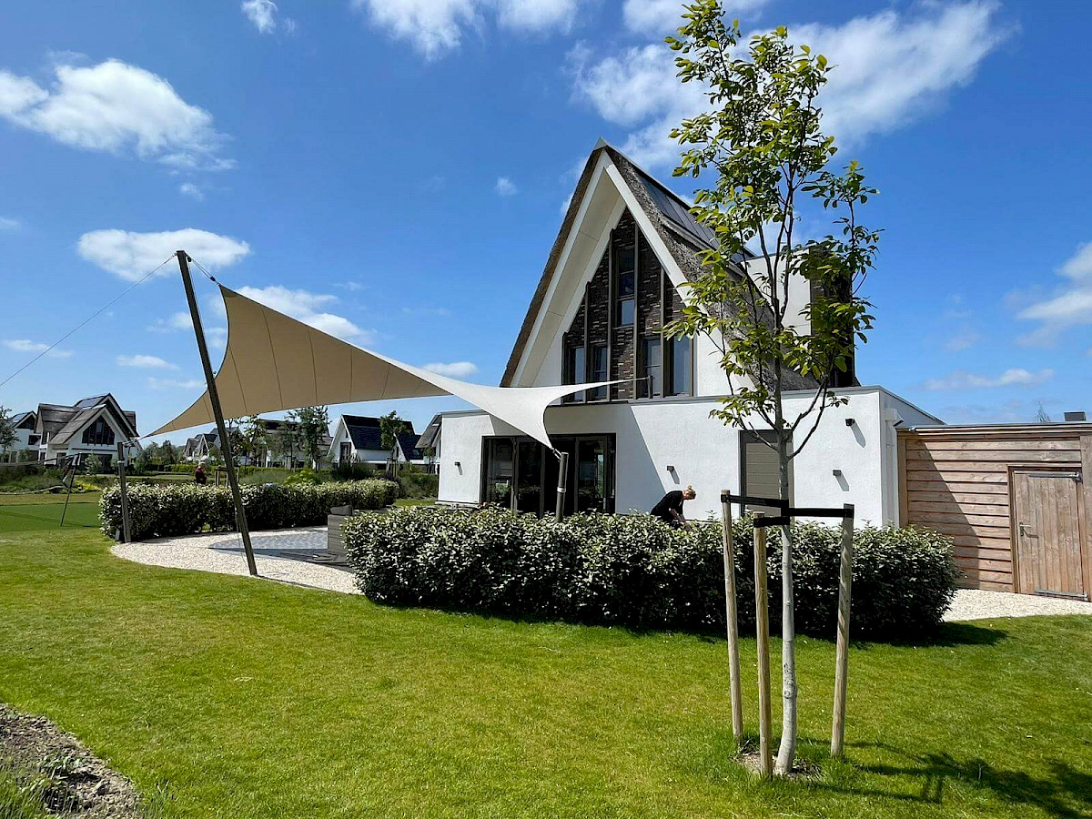 Na de 3D-meting volgt een regenanalyse. Pluvia, het programma dat daarvoor gebruikt wordt, is speciaal ontworpen door hun eigen IT-team. “Binnen een paar minuten weten we of het design genoeg afwatert en er dus nergens water op het doek blijft staan. Omdat we natuurlijk de juiste oplossing willen bieden, voeren we vervolgens een schaduwanalyse uit. Daarmee kunnen we tot op de minuut nauwkeurig zien wat het schaduwpatroon gedurende de dag doet. Zo kunt u vooraf dus al bepalen waar u zon of schaduw wilt. Tot slot maken we een 3D-tekening zodat u kunt zien hoe het doek eruit komt te zien op uw locatie. Zelfs een 3D-film behoort tot onze mogelijkheden.”