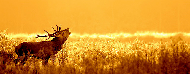 Als we even verderop stoppen bij de uitkijktoren horen we de koekoek volop roepen. Alleen het mannetje roept zijn eigen naam. Het vrouwtje maakt een hoog hinnikend geluid. Eenmaal boven op de toren kijken we uit over de weilanden van de voormalige grashut. Ook hier is het moeras terug gebracht. Een kudde exmoorpony’s, een oerpaardje, houdt de vegetatie kort. Ganzen lopen met hun jongen door het veld op zoek naar eten. Bij de vennen staart een grote zilverreiger over het water en ook een zwarte ooievaar profiteert van deze nattigheid. Het zal niet lang meer duren voordat ook de edelherten weer op het veld te zien zijn. Ze gebruiken het veld als strijdtoneel om uit te maken wie hier de baas is. Het edelhert is echt een dier van het moeras. De mens heeft ze door de jacht teruggedreven naar hoge zandgronden, maar met zo’n groot gewei in het bos leven is helemaal niet gemakkelijk. Met hun hoge poten banjeren ze gemakkelijk door het water heen. Je kunt aan hun bouw zien dat het edelhert echt thuishoort in een moerasbos.