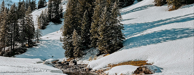 ‘This is my therapy’, zegt Erwin. Ik kijk hem met gefronste wenkbrauwen aan. Hij lacht. ‘At the end of the day you'll know what I mean’, voegt hij toe. Over mijn linkerschouder zie ik een groene vallei zonder sneeuw, terwijl rechts de spitse bergtoppen bedekt zijn door een metersdik pak sneeuw. Ik wandel over houten bruggetjes en langs kabbelende beken. Het zachte, ritmische gekraak dat bij elke stap hoor, maakt me steeds rustiger. Het panoramische uitzicht verveelt geen moment.