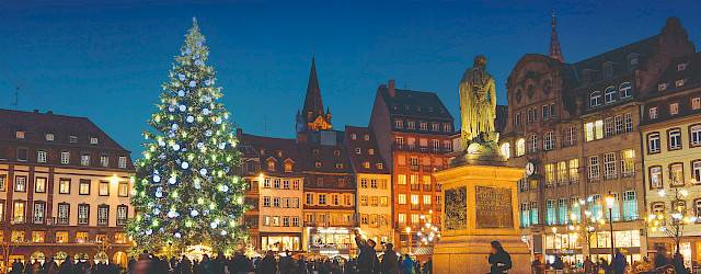 De magie van Straatsburg voel je pas echt tijdens een wandeling door La Petite France, het historische stadsdeel vol smalle straatjes en schilderachtige vakwerkhuizen. De huizen, die in december versierd zijn met duizenden lichtjes, spiegelen zich in de rustige kanalen. Als je geluk hebt, zie je zelfs een laagje sneeuw op de daken liggen, wat het sprookjesachtige plaatje compleet maakt. Vooral tijdens de schemering lijkt deze wijk rechtstreeks uit een kerstkaart te komen. Je kunt niet anders dan even stilstaan om de schoonheid van dit winterse tafereel in je op te nemen.