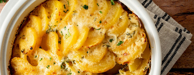 Niets zegt comfort food zoals een goudbruine aardappelgratin. De romige saus met Gruyère, knoflook en kruiden smelt samen met de zachte aardappelschijfjes tot een gerecht dat zowel doordeweeks als bij een dinerfeestje indruk maakt.