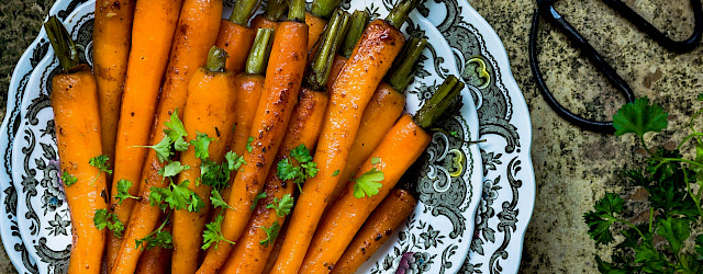 Schraap de bospeen met een schilmesje en snijd het loof van de worteltjes. Laat er nog een stukje groen aan zitten. Verwarm de olie in een pan en voeg de wortels toe. Breng op smaak met zout en peper en laat 15 minuten op middelmatig vuur stoven. Voeg dan de balsamicoazijn toe en eventueel de suiker en honing. Schep de wortels om, laat nog 5 minuten stoven en serveer. Lekker bij ovenkrieltjes en een stukje vlees.