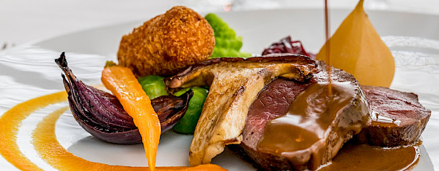 4 kleine stoofperen, gegaard in rode wijn en rode port