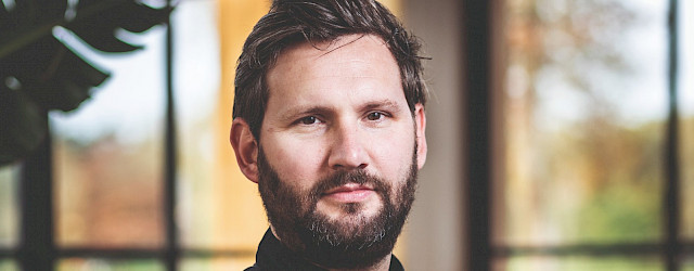 Snijd een stuk rettich op de mandoline of snijmachine en rol hier de tartaar in.
