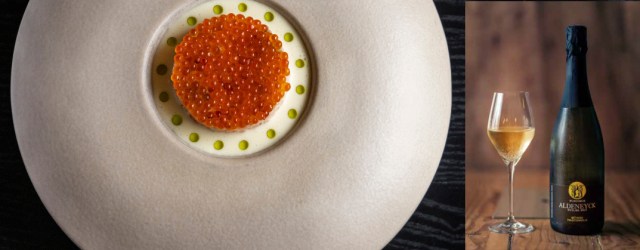 Chef Dennis Vermeulen van restaurant Waers kiest als aperitief voor de Riesling Brut van Wijndomein Aldeneyck, gelegen in de Maasvallei. Dit is tegenwoordig één van de droogste gebieden in de Benelux en dus ideaal voor wijnbouw. De Riesling Brut is een heerlijke combinatie van het mooie fruit van de Rieslingdruif en de verleidelijke aroma’s van een tweede gisting op fles, vertelt Dennis.