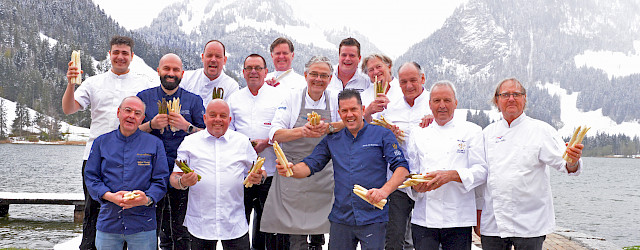 Roodbeen en Brienen zijn in de loop van die elf jaren goed bevriend geraakt en noemen zich gekscherend ‘aspergevrienden’. Ieder jaar breken ze zich het hoofd hoe ze voor de volgende editie van het Nederlands-Zwitserse culi-feest weer iets nieuws kunnen bedenken om de gasten mee te verrassen. Dat komt deels tot uiting in de ongekende creativiteit die de kokende ‘bedevaartgangers’ in het menu brengen, maar deels ook in het amusement tijdens het diner. Bij de recente elfde editie werd het amusement verzorgd door het bekende Limburgse Duo Difference. Tijdens een van hun laatste nummers haalde de inmiddels 82-jarige Paul Fagel, vorig jaar door Gault Millau onderscheiden met de Lifetime Achievement Award, plotseling zijn saxofoon tevoorschijn en liet hij de asperges bijna letterlijk de pan uit swingen. Het bleef daarna nog lang onrustig in Schwarzsee. Volgend jaar weer een Spargel Spektakel? Peter Roodbeen: ‘ik zeg niets, maar het zou zo maar kunnen…’