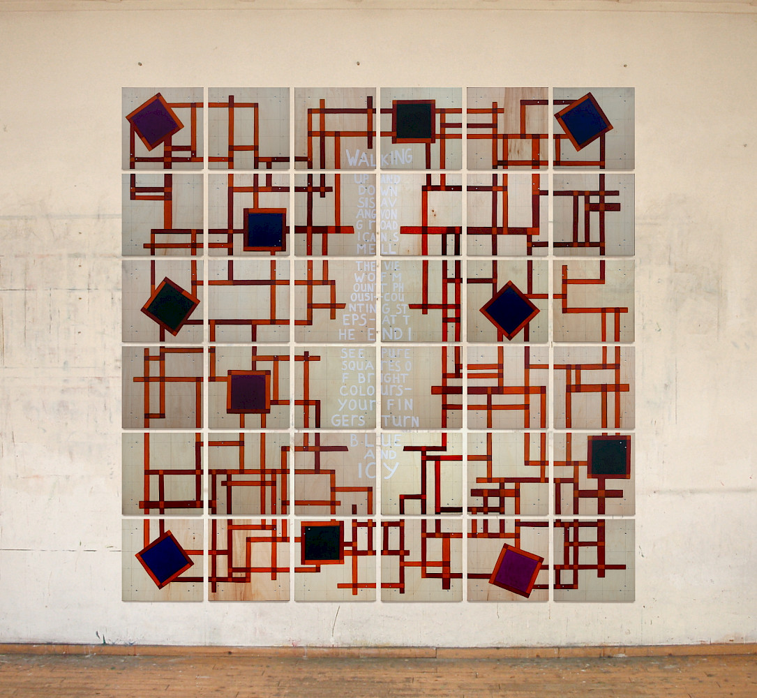 Tekst en beeld lopen als een rode draad door het werk van Mat van der Heijden (Panningen, 1964). Hij combineert herkenbare figuren met geometrische patronen en plakt schijnbaar lukraak zijn letters en woorden op zijn tekeningen en schilderijen. Blijf je wat langer in zijn beeldtaal hangen, dan ontwaar je de eigenzinnige wijze waarop hij de wereld om zich heen in lagen ontrafelt en met zeer uiteenlopende materialen vertaalt. Eenmaal uitgedaagd versmelten de lagen, imponeert het niet alledaagse materiaalgebruik en groeit zijn taalgebruik naar poëtische bespiegelingen. Van der Heijden’s rubriek BITS is al jaren een vast onderdeel van cultureel maandblad ZOUT.