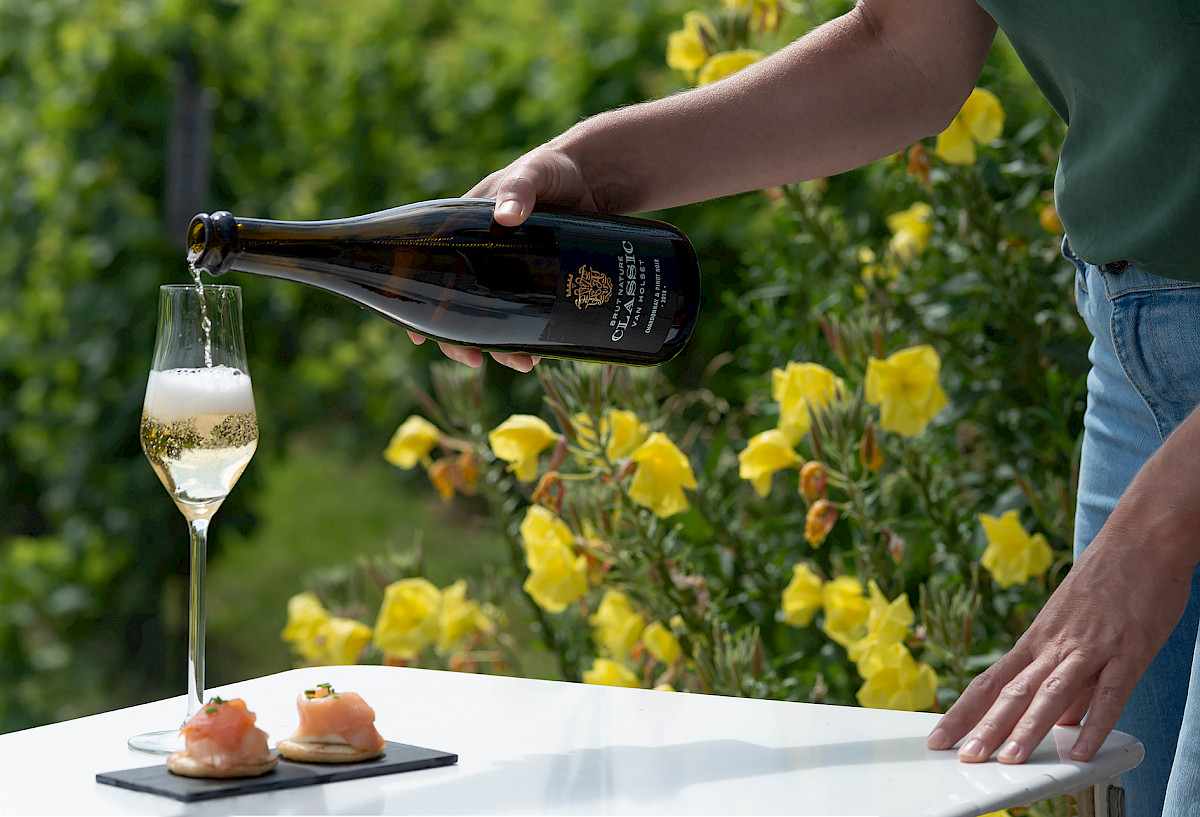 Een andere, letterlijke klassieker die Domein Holset aanbiedt is de Classic. De Classic Extra Brut is een traditionele blend van Chardonnay en Pinot Noir. Bijzonder is de herkomst, de druiven zijn namelijk afkomstig van de bodems van de Fromberg in Voerendaal. Stevig, elegant en toegankelijk van smaak. Een favoriete wijn? Dat heeft Romy niet specifiek. Tussen al dat lekkers valt maar lastig te kiezen en dus laat ze dat antwoord wijselijk open. “Het hangt heel erg van het weer en mijn stemming af.”
