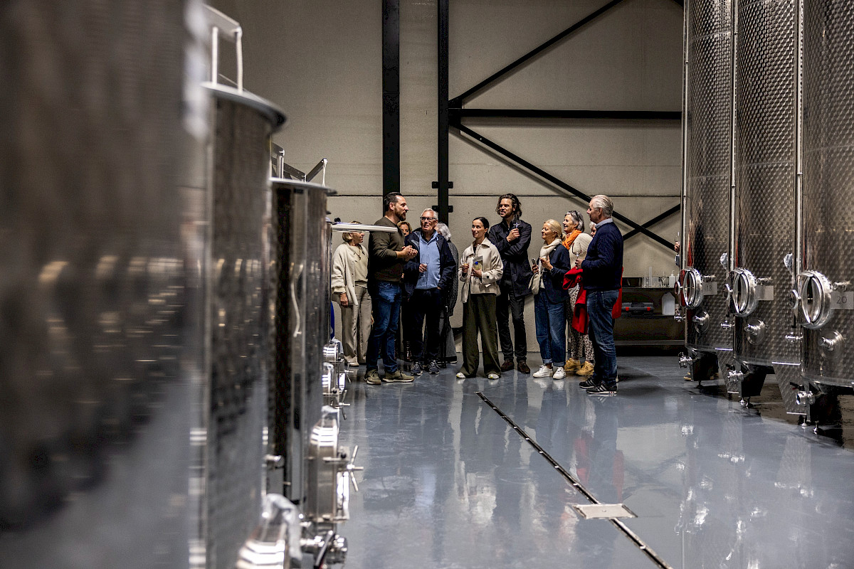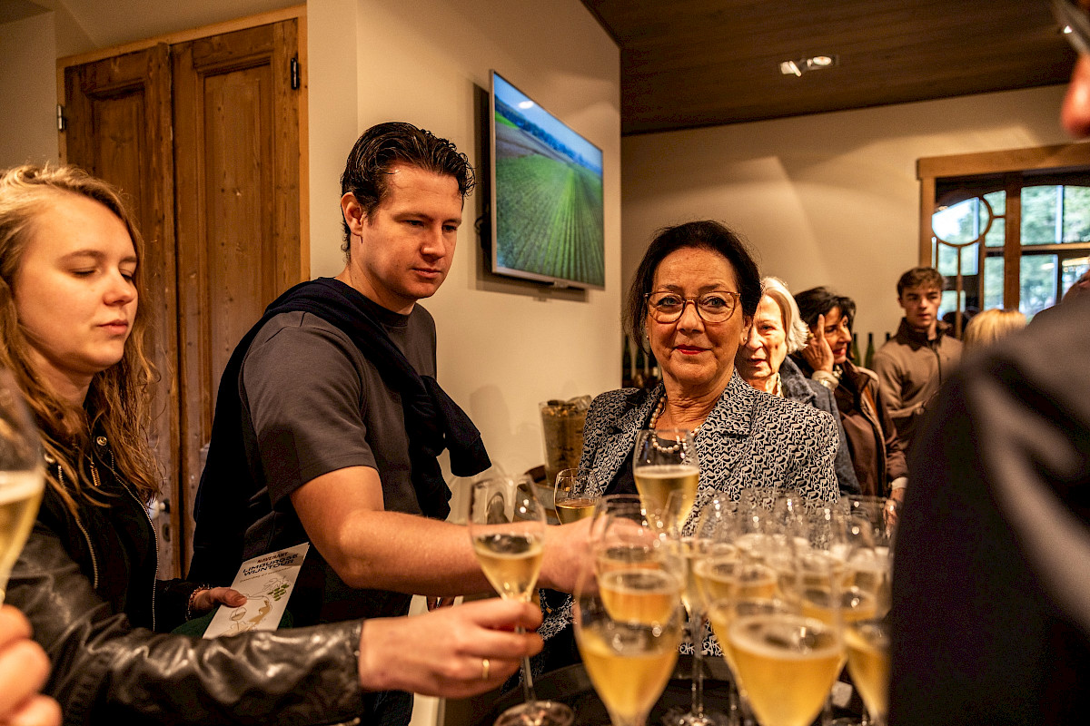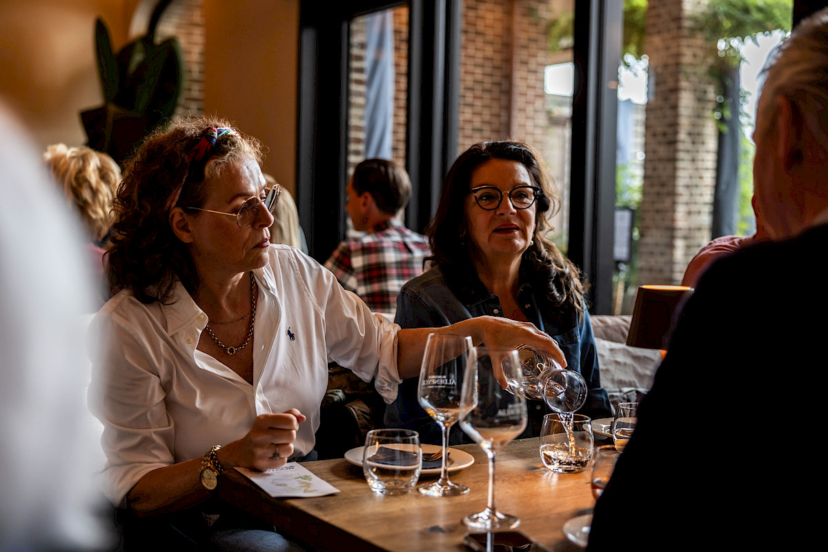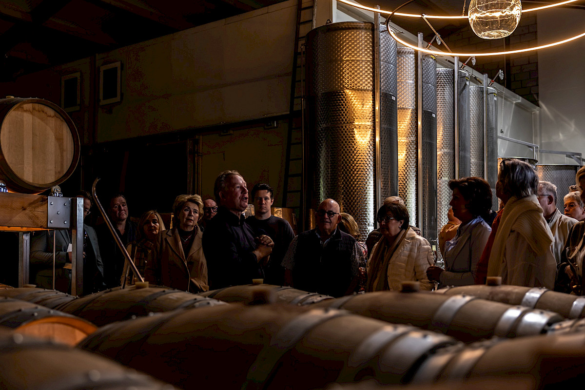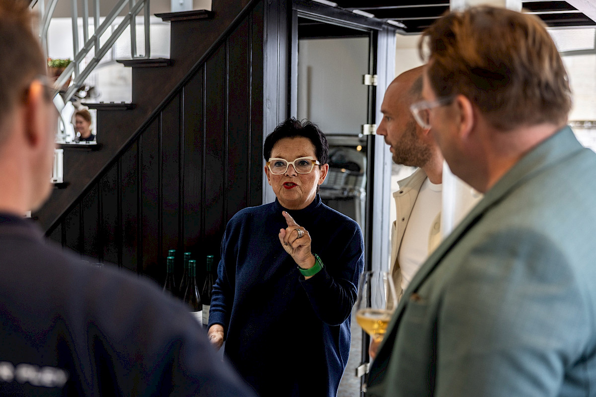 Onze eerste stop was Wijndomein Aldeneyck, waar Karel Henckens ons warm verwelkomde. Met veel enthousiasme vertelde hij hoe terroir en vakmanschap samenkomen in zijn wijnen. Vervolgens gingen we naar Wijnlandgoed Sterreheim, waar Gerjan Schijlen ons meenam in de droom die nog volop aan het ontwikkelen is. Zijn bevlogenheid en de veelbelovende eerste resultaten lieten duidelijk zien dat hier iets moois aan het groeien is. De dag sloten we af bij Wijndomein Heerenhuys D'r Pley, waar Pierre en Tineke Gubbels ons niet alleen hun wijnen lieten proeven, maar ons ook meenamen in hun indrukwekkende kunstcollectie. De combinatie van smaak en schoonheid maakte een onvergetelijke indruk op ons allemaal.