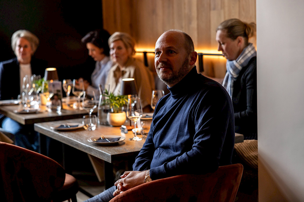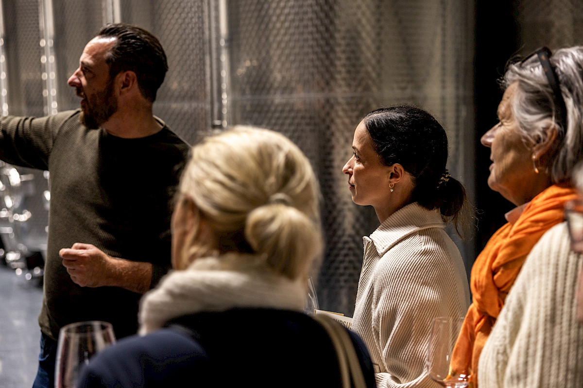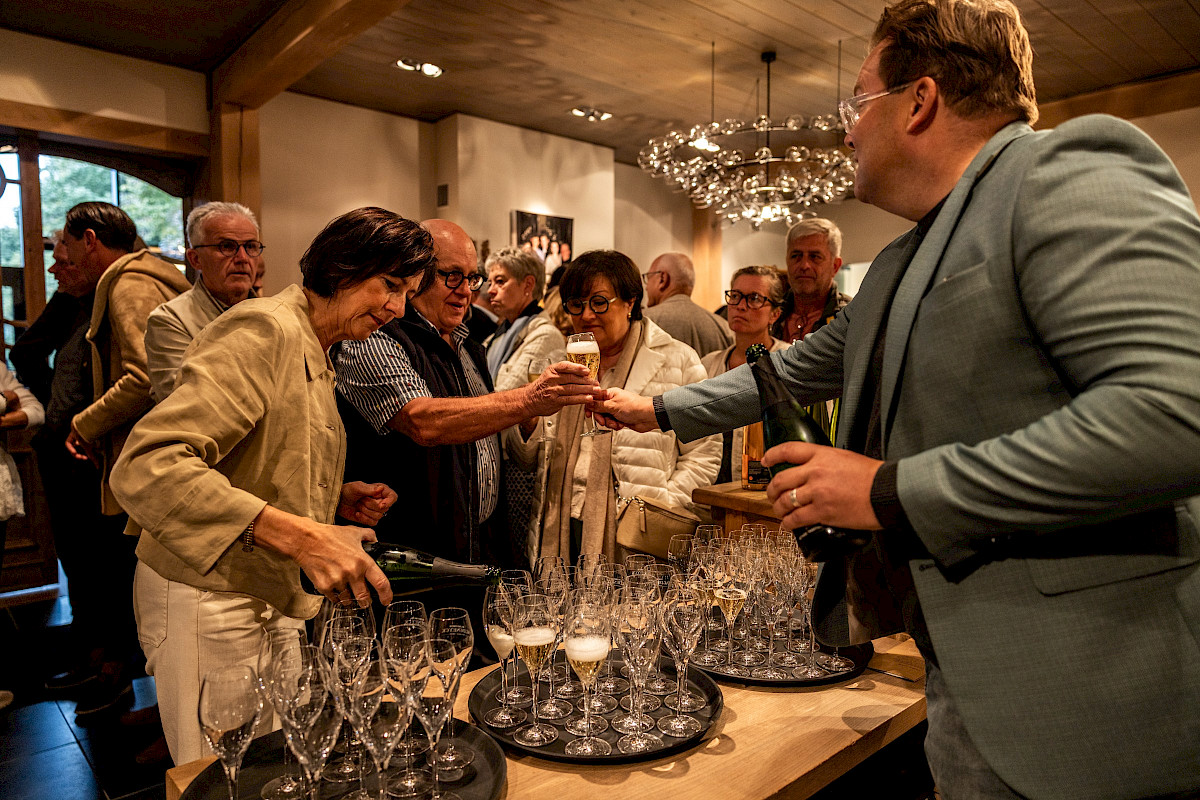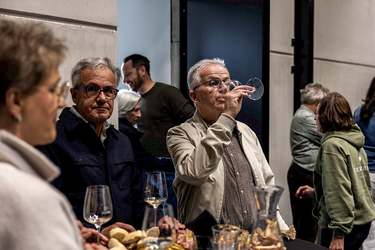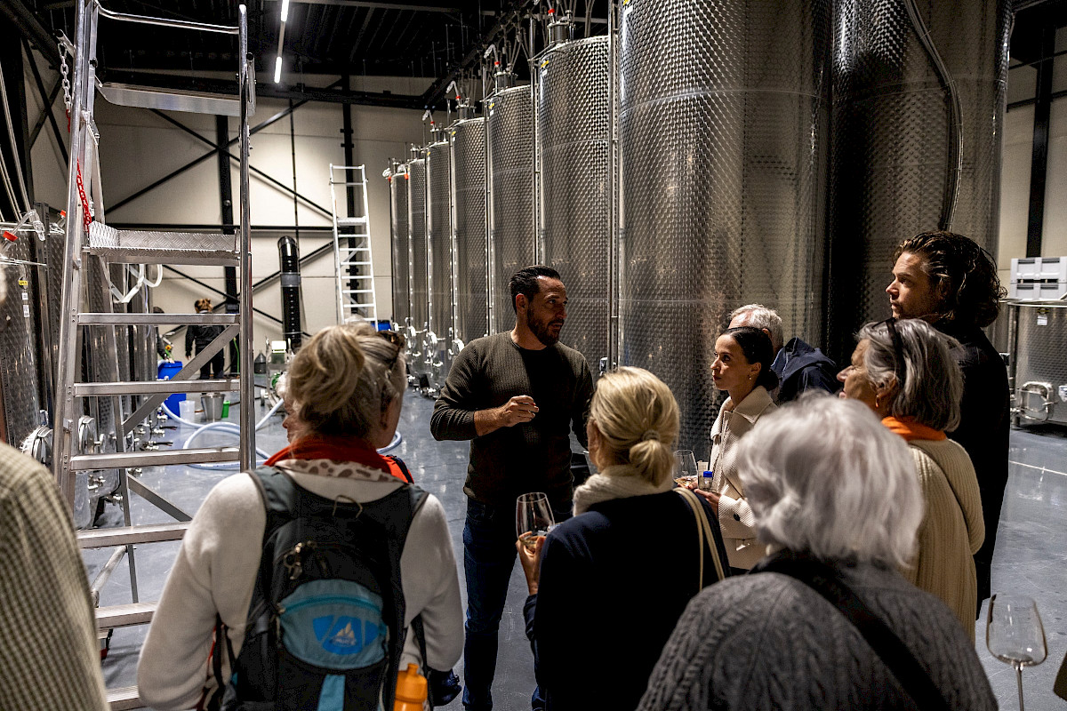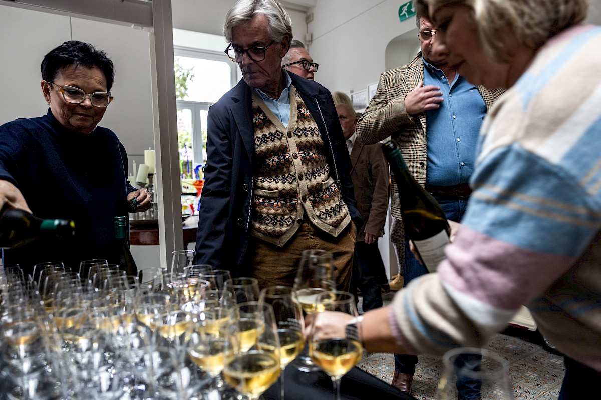 Onze eerste stop was Wijndomein Aldeneyck, waar Karel Henckens ons warm verwelkomde. Met veel enthousiasme vertelde hij hoe terroir en vakmanschap samenkomen in zijn wijnen. Vervolgens gingen we naar Wijnlandgoed Sterreheim, waar Gerjan Schijlen ons meenam in de droom die nog volop aan het ontwikkelen is. Zijn bevlogenheid en de veelbelovende eerste resultaten lieten duidelijk zien dat hier iets moois aan het groeien is. De dag sloten we af bij Wijndomein Heerenhuys D'r Pley, waar Pierre en Tineke Gubbels ons niet alleen hun wijnen lieten proeven, maar ons ook meenamen in hun indrukwekkende kunstcollectie. De combinatie van smaak en schoonheid maakte een onvergetelijke indruk op ons allemaal.