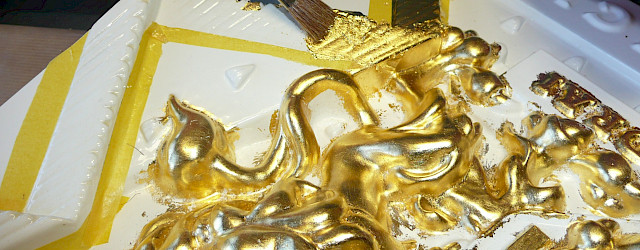 Bij Sillen & Co. komen creativiteit en traditioneel Limburgs vakmanschap dagelijks samen met typografie, grafiek en plastiek. Het maken van de schilden is een ambacht dat, juist op dit niveau, in Nederland steeds zeldzamer wordt en langzaam dreigt te verdwijnen. “Het proces begint met het afvormen van het model om zo een gegoten product te kunnen gieten. De schilden worden gegoten van aluminium. En die worden dan afgewerkt. Allereerst met een poedercoating bij een specialist in Reuver. Daarna komt het schild hier terug en begint het verfijnde werk. Wij plakken delen af en brengen het bladgoud in fases aan, dat vraagt geduld, want je kunt het niet bespoedigen. Daarna wordt het zorgvuldig beschilderd in de heraldische kleuren. De essentie is handwerk en dat maakt dat het tijd kost voordat een schild echt af is”, zegt Eef. “Het vraagt precisie, aandacht en vooral tijd om het goed te doen”, gaat hij verder. “De technische stappen, zoals het boren en tappen, doen wij grotendeels machinaal, zodat het schild straks goed kan worden bevestigd. Maar ook daar gaat tijd in zitten. Zelfs als het snel lijkt te gaan, zit er altijd een zorgvuldig proces achter.”