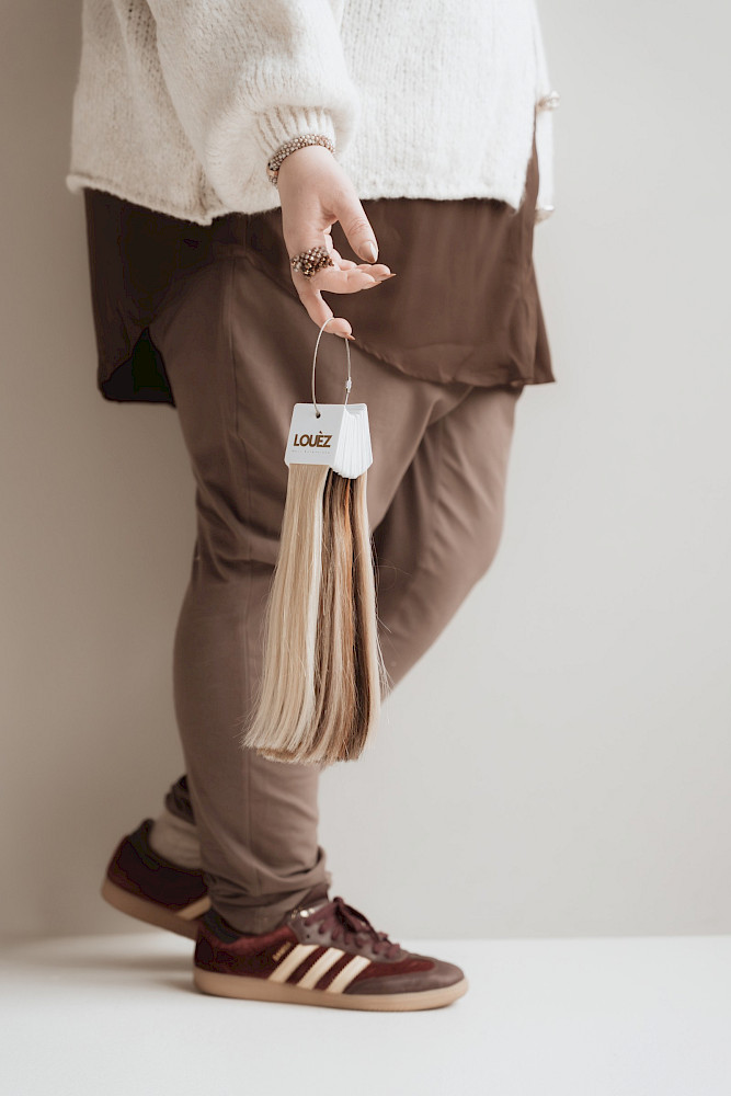 De afgelopen jaren verdiepte Priscilla zich steeds verder in specialisaties die haar werk completer maken. Een daarvan is kleuranalyse. Door opleidingen en trainingen leerde ze gerichter kijken naar wat bij iemand past. “Je ziet sneller welke kleuren iemand versterken”, zegt ze. Naast kleuranalyses ontwikkelde Priscilla ook haar eigen extensionlijn. “Ik werkte met verschillende merken en merkte telkens: de kleur klopt net niet, of de kwaliteit laat te wensen over.” Ze begon klein, met een eigen selectie extensions en kleurenringen op voorraad. Precies die tinten die zij zelf miste in het aanbod. De lijn groeit stap voor stap, op een manier die bij haar past. Geen massaproductie, maar overzicht, controle en kwaliteit.