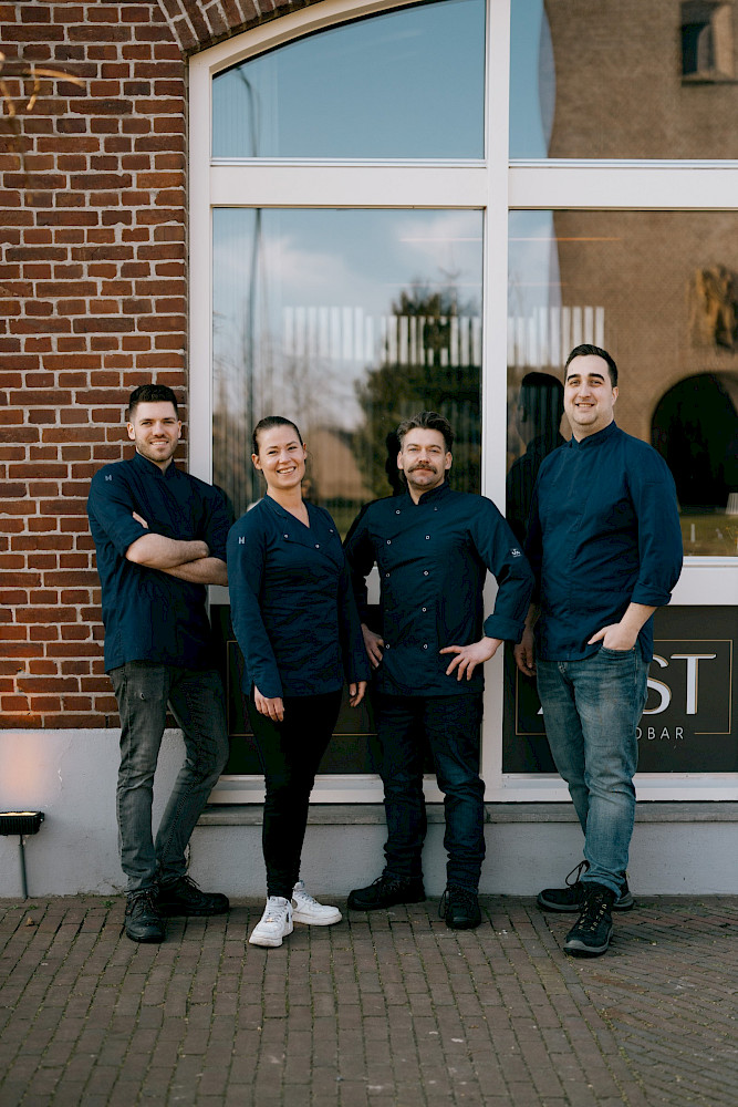 Het team draagt geen strakke uniforme kleiding, maar eigen kleding die bij hen past. “Iedere gang serveren we met nieuw glaswerk en bestek, alles moet op hoog niveau blijven. Tegelijkertijd houden we het laagdrempelig. Gasten moeten zich op hun gemak voelen en dat lukt alleen als het personeel zich ook prettig voelt.”