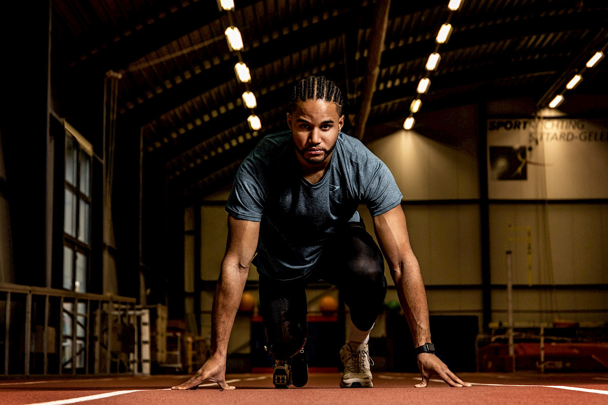 De in Maastricht geboren Noah Mbuyamba (24) was hard op weg naar een veelbelovende voetbalcarrière, toen hij ruim vijf jaar geleden tijdens zijn vakantie in Indonesië door medisch falen na een scooterongeluk zijn been verloor. Weg voetbaldroom. Onlangs ontving hij als hardloper en verspringer de A-status om als lid van TeamNL de benodigde ondersteuning te krijgen voor het behalen van de Paralympics 2024 in Parijs. Navenant zocht hem op tijdens een training in Sittard.