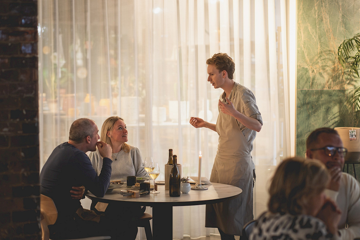 “Verschrikkelijk snel”, reageert chef Peter op hun eerste Gault&Millau-score. “We hadden natuurlijk een doel voor ogen”, maar dat ze in hun eerste jaar 13 van de 20 punten binnenhaalden, hadden ze niet direct voorzien. “We hebben echter een bijzonder concept”, vult Peter aan. Hij vervolgt: “Onze aarde en wereld moet nog langer mee, als het even kan. We willen het verschil maken in meerdere opzichten, verder gaan dan nodig is. In onze gerechten en wijnen dragen we dat uit”.