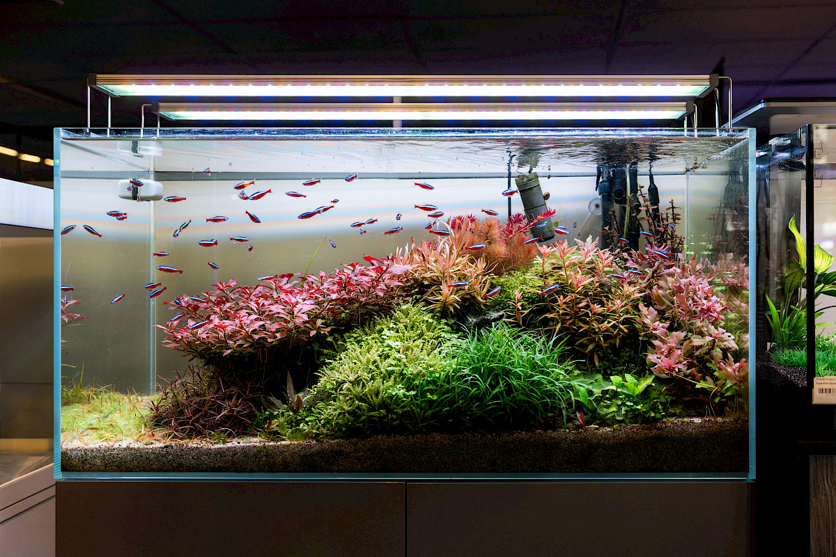 Over de vraag of hij belangrijke tips heeft voor beginnende aquariumliefhebbers hoeft Knops niet lang na te denken. “Mensen die voor het eerst met een aquarium willen starten denken vaak ‘laat ik eens met een klein bakje beginnen, en als dat goed bevalt, stap ik daarna wel over naar een grote bak.’ Mijn advies is altijd om te starten met een bak van voldoende grootte die past in je woonkamer, niet te groot maar zeker niet te klein. Als je niet na een tijdje hoeft over te stappen op een grotere bak, hoef je ook niet voor de tweede keer alle noodzakelijke opstartfases opnieuw te doorlopen, zoals het goed onder controle krijgen van algen- en plantengroei. Ik adviseer klanten altijd om dat zichzelf niet aan te doen omdat dit vaak ten koste gaat van het genieten van het nieuwe aquarium.”
