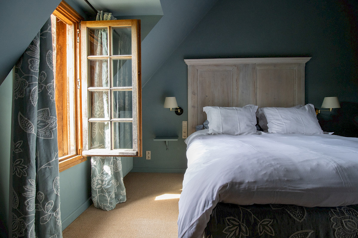 Voor bloemiste Tessa is de hoeve ook een kans om haar creatieve talenten verder te ontwikkelen. “Ik had al veel grote decoraties gemaakt en ook lesgegeven, maar hier voelde het alsof alles samenkwam. Mensen kwamen van ver om mijn werk te zien, en toen ontstond het idee om ook verblijfsaccommodatie aan te bieden. Mensen wilden niet meer alleen de creaties bewonderen; ze wilden hier blijven, om de sfeer van deze plek volledig in zich op te nemen.” En zo geschiedde. Inmiddels hebben ze op hun domein tien luxe kamers waar gasten onder andere kunnen genieten van al het groen en heerlijke gastronomie, met ingrediënten van eigen bodem. De kleurrijke maaltijden, geïnspireerd door Tessa’s ervaring als bloemiste, zorgen elke keer weer voor een visueel en smaakvolle beleving. Sinds 2019 draait ook hun oudste zoon Nanne en zijn vrouw Lucie volop mee in het familiebedrijf. “Ze ontmoetten elkaar in Ierland, tijdens hun koksopleiding op de Ballymaloe Cookery School. De twee hebben een gemeenschappelijke droom: via eten, mensen bewust maken van zichzelf, anderen en de wereld om hen heen. Uiteindelijk hebben ze besloten om hun passie samen met ons verder door te zetten”, vertelt een trotse moeder. Deze komst heeft een frisse wind door de hoeve gebracht. Hun culinaire ervaring en nieuwe ideeën hebben het aanbod verder verrijkt, waardoor het een nóg levendigere plek is geworden. Het is niet ongebruikelijk dat gasten niet alleen voor de accommodatie komen, maar ook voor een culinair arrangement.
