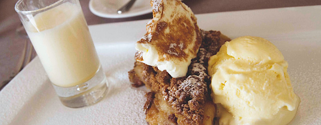 Meng de bloem, basterdsuiker en roomboter door elkaar tot een glad mengsel ontstaat. Rol dit mengsel uit met de boter en vet de springvorm in met boter. Steek de bodem van de appelcrumble uit met een springvorm en houd de rest van het deeg even apart. Schil en snijd de appels. Voeg de bruine suiker en kaneel toe. Als het deeg in de bodem van de springvorm ligt, het deeg inprikken met een vork. Doe het appelmengsel in de springvorm. Maak met een restant van het deeg het deksel van de appelcrumble. Plaats het geheel 45 minuten in een voorverwarmde oven op 180°C. Doe de mascarpone in een mengkom met suiker en room. Meng het goed glad tot een mooi mengsel. Doe een stukje taart op het bord. Leg daarop een toef mascarpone met wat kaneel eroverheen gestrooid.