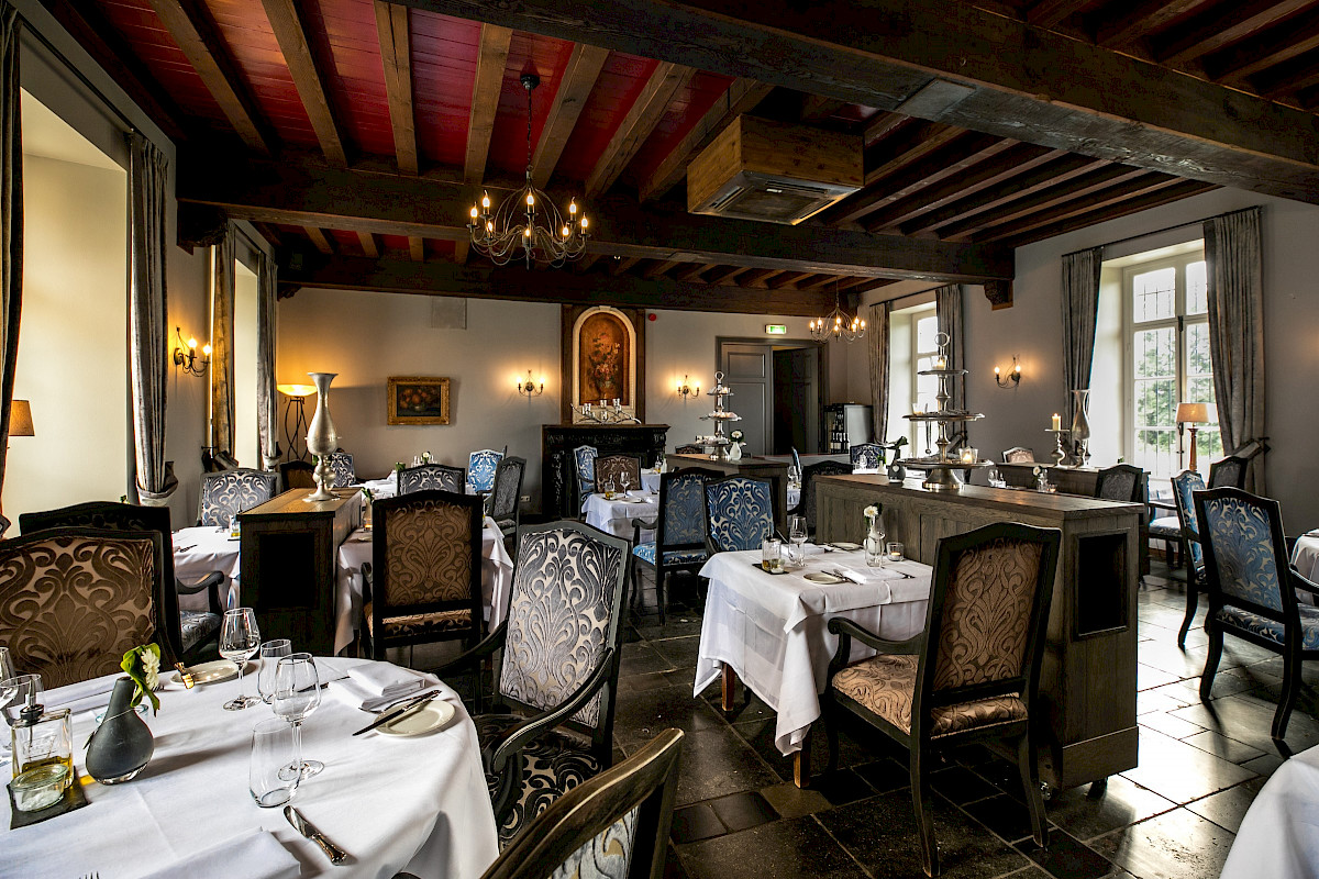 Het restaurant is gelegen in de voorburcht van het landgoed. Hier kunt u genieten van diverse seizoensgerechten van de specialiteitenkaart of een keuze maken uit de diverse menu’s. Bij mooi weer serveren wij het diner op het vlonderterras aan de grachtzijde van het kasteel. Voor een klein gerecht, dagschotel, snack of koffie met gebak kunt u terecht in de brasserie en bij mooi weer op één van de terrassen. Proef de bourgondische weldaad van Limburg op Landgoed Kasteel Daelenbroeck. Een unieke plek om heerlijk tot rust te komen na een wandeling, fietstocht of gewoon om zomaar lekker te ontspannen. Split-level suites in de kasteelhoeve - Torenkamers - Luxe sauna toren suites - Sfeervolle zalen voor bijeenkomsten, feesten en bruiloften - Brasserie.